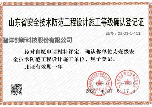 山东省安全技术防范工程设计施工等级确认登记证
